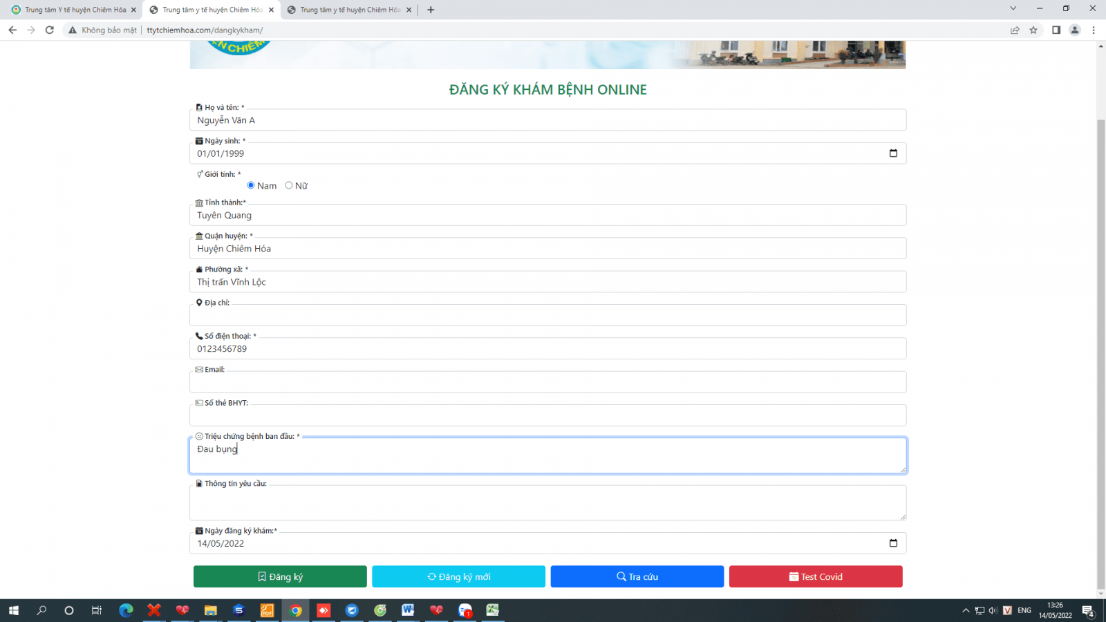 1:Truy cập vào đường link http://trungtamytehuyenchiemhoa.com.vn