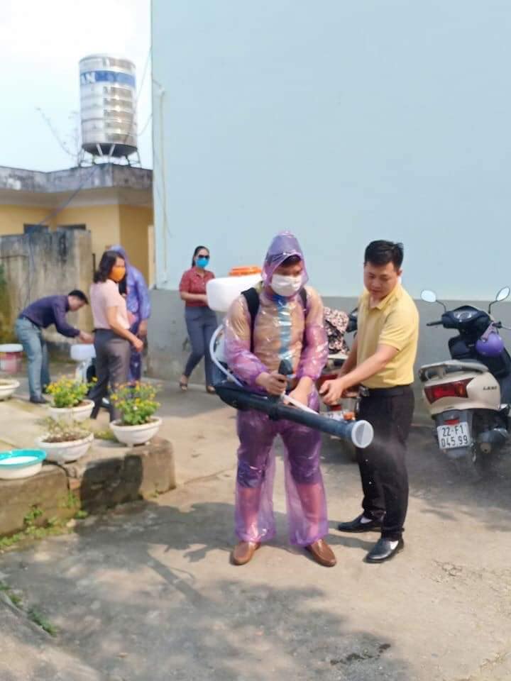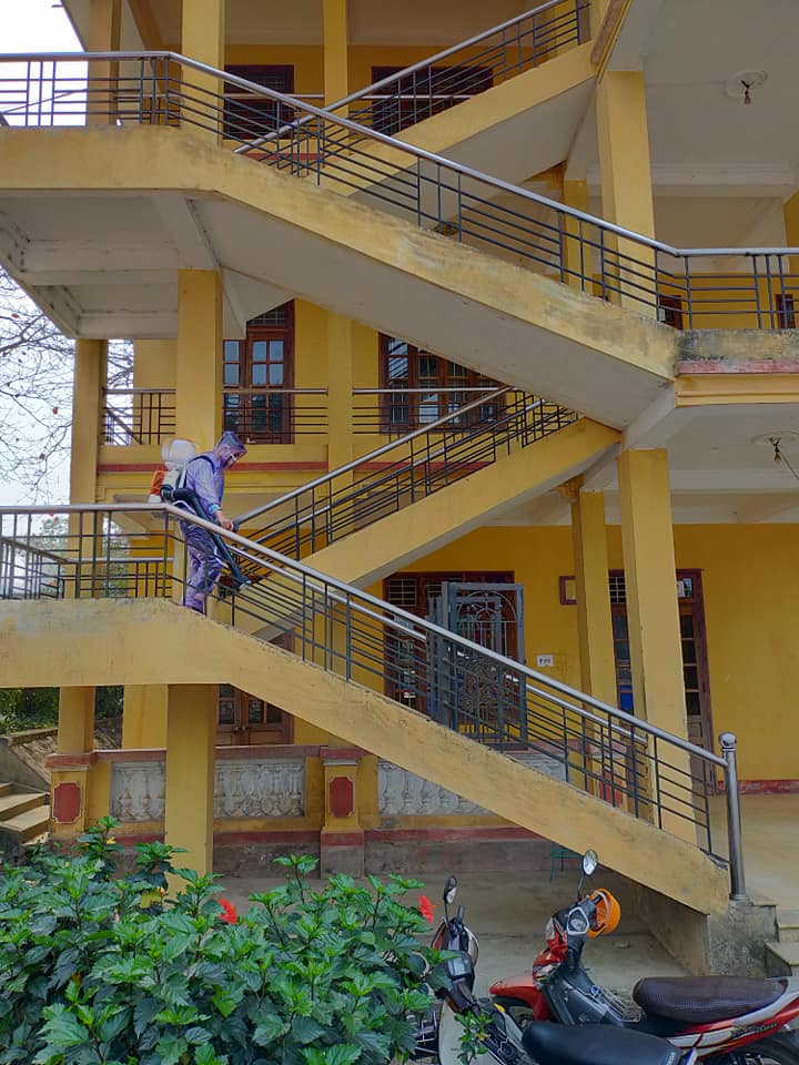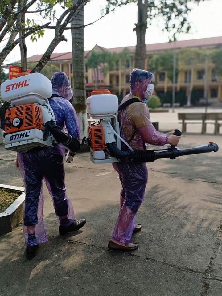 Hướng dẫn trường THPT Chiêm Hóa phun khử khuẩn, sẵn sàng đón các em học sinh quay lại trường lớp