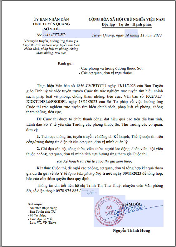 Thứ 2, 20/11/2023 | 13:45 A- A A+ | Kế hoạch, Thể lệ Cuộc thi trắc nghiệm trực tuyến tìm hiểu chính sách, pháp luật về phòng, chống tham nhũng, tiêu cực CV_1856_BTG_TU_tuyen_truyen_Cuoc_thi_965a5cb619.pdf Đọc bài Lưu CV 1856 BTG TU tuyen truyen Cuoc thi.pdf Tập tin đính kèm Tổng số điểm của bài viết là: 0 trong 0 đánh giá Click để đánh giá bài viết