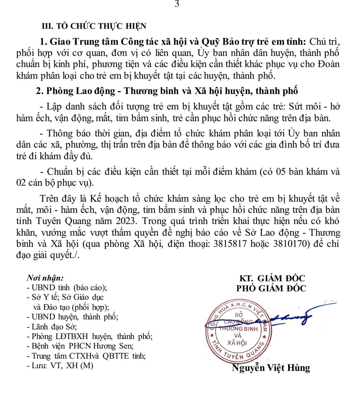 KẾ HOẠCH TỔ CHỨC KHÁM SÀNG LỌC CHO TRẺ EM BỊ KHUYẾT TẬT VỀ MẮT, MÔI - HÀM ẾCH, VẬN ĐỘNG, TIM BẨM SINH VÀ PHỤC HỒI CHỨC NĂNG TRÊN ĐỊA BÀN TỈNH TUYÊN QUANG NĂM 2023