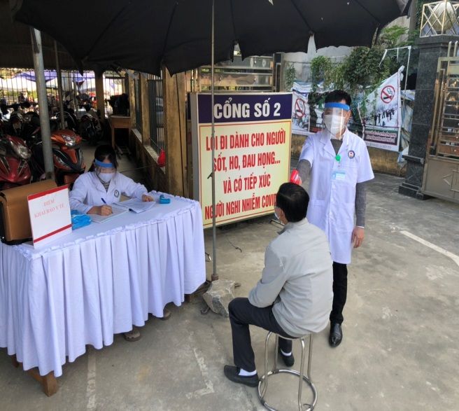 - Tại cổng số 1 Trung tâm Y tế: Cán bộ kiểm tra và lấy lời khai y tế được biết bệnh nhân vừa đi du lịch về từ Chợ Mới, 212 Hoàng Diệu, Nam Dương, Hải Châu từ ngày 20-22/7/2020. Nơi tiếp đón khai báo y tế hướng dẫn cho người bệnh đi theo luồng đường nghi người bệnh mắc bệnh truyền nhiễm Covid-19. Nơi tiếp đón khai báo y tế hướng dẫn cho người bệnh đi theo luồng đường nghi người bệnh mắc bệnh truyền nhiễm Covid-19. Do có triệu chứng ho và sốt nên anh A. được nhân viên y tế hướng dẫn đi vào cổng số 2.