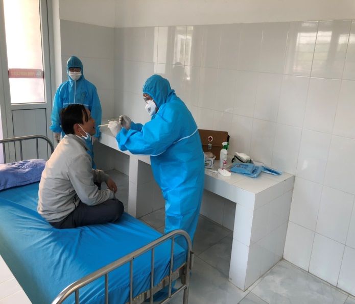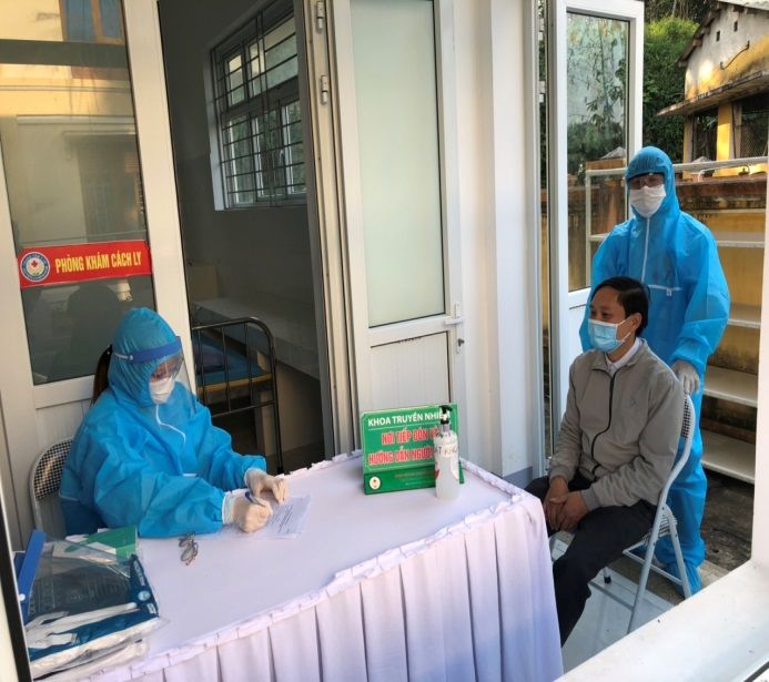 Tại phòng khám cách ly khoa Truyền nhiễm, bác sĩ khai thác các triệu chứng và làm rõ hơn các yếu tố dịch tễ của anh A, thực hiện thăm khám đầy đủ. Với các dữ kiện thông tin ban đầu, bác sĩ chẩn đoán anh A. có nghi nhiễm COVID-19 và lập Hồ sơ bệnh án, báo cáo Ban giám đốc, khoa Kiểm soát bệnh tật và HIV/AIDS lấy mẫu xét nghiệm, chụp X-quang phổi tại phòng để giúp chẩn đoán xác định. Kỹ thuật viên tiến hành lấy mẫu dịch hầu họng, lấy máu tĩnh mạch và gửi mẫu tới Trung tâm kiểm soát bệnh tật tỉnh theo đúng quy trình kỹ thuật. Sau khi hoàn tất thủ tục thăm khám, điều dưỡng hướng dẫn khách hàng di chuyển lên phòng cách ly tạm thời để nghỉ ngơi và chờ đợi kết quả, đồng thời hướng dẫn khách hàng hạn chế di chuyển, không tiếp xúc gần với người khác trong khu vực cách ly.