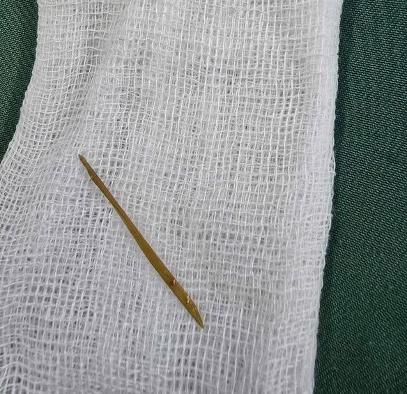 Hình ảnh dị vật (Tăm tre) dài 4cm