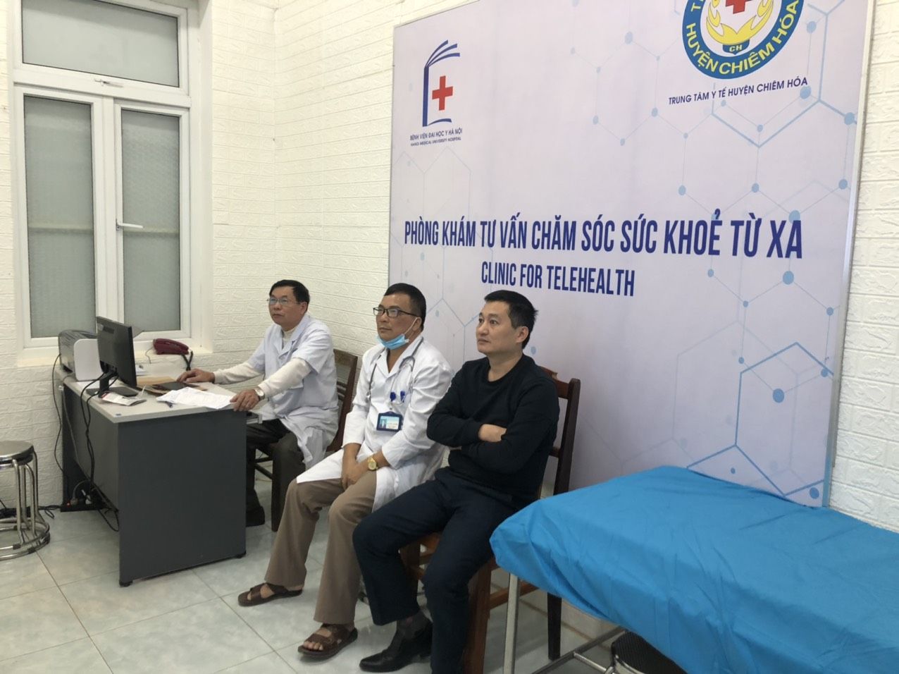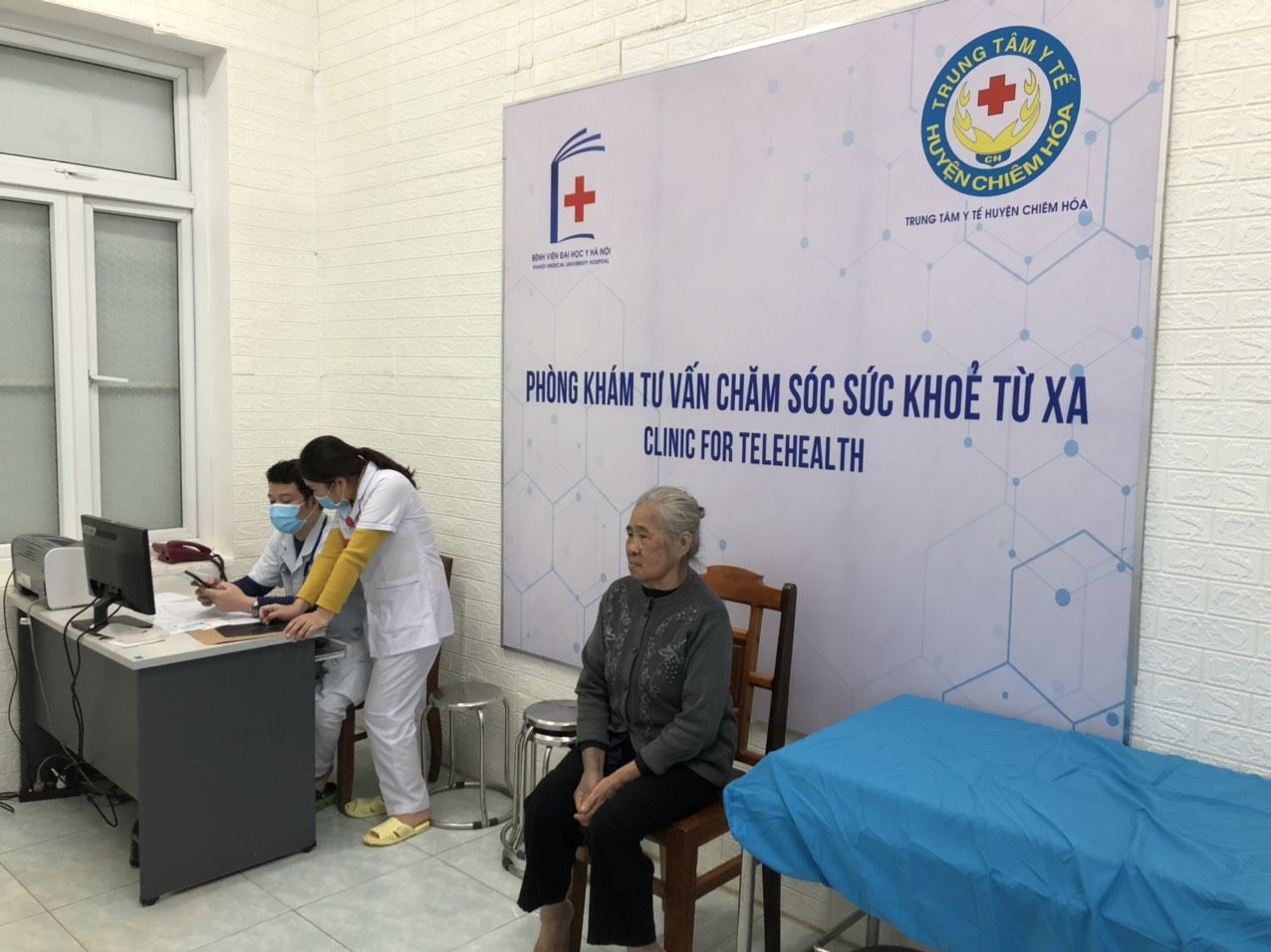 Nhằm mục đích đáp ứng nhu cầu khám chữa bệnh của người dân, tăng cường sựu tiếp cận của người dân với dịch vụ y tế chất lượng cao của Bệnh viện Đại Học Y Hà Nội; hỗ trợ duy trì hiệu quả của biện pháp giãn cách xã hội phòng chống dịch bệnh và giảm tải các bệnh viện tuyến trên Trung tâm Y tế huyện Chiêm Hóa phối hợp với Bệnh viện Đại học Y Hà Nội triển khai Phòng khám tư vấn, chăm sóc sức khỏe từ xa tại Khoa Khám bệnh, Trung tâm Y tế huyện Chiêm Hóa.