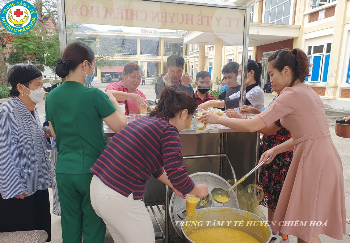 Trung tâm Y tế huyện Chiêm Hoá xin trân thành cảm ơn nhà hảo tâm Trần Thị Dự, nhà hảo tâm Tuấn Khanh (Thành phố Hồ Chí Minh), nhà hảo tâm Long Xuân Chiến (Chủ kênh Youtube Đông Bắc Quê Tôi) đã ủng hộ một nồi cháo và hơn 20 xuất quà, mỗi xuất trị giá 200k cho các bệnh nhân đang điều trị tại Trung tâm.