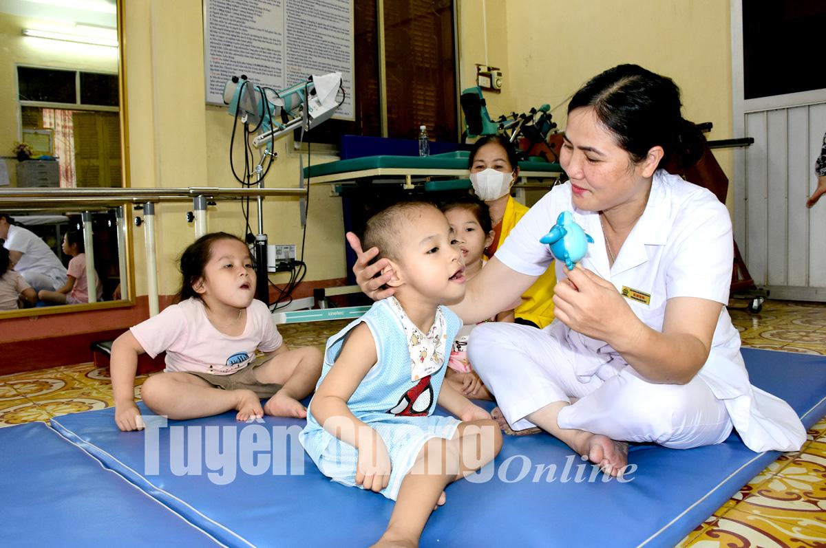 Bác sỹ Bùi Thị Yến, Bệnh viện Phục hồi chức năng Hương Sen điều trị cho trẻ.