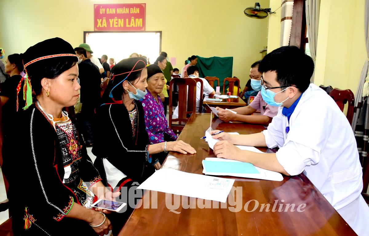 Cán bộ Bệnh viện Đa khoa tỉnh khám bệnh cho người dân trên địa bàn xã Yên Lâm (Hàm Yên).