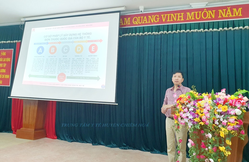 Ngày 07/06, tại TTYT huyện Chiêm Hoá, Sở Y tế đã tổ chức lớp tập huấn kê đơn thuốc bằng hình thức điện tử, giới thiệu giải pháp gửi đơn thuốc điện tử tới người bệnh cho. Tham gia lớp tập huấn có lãnh đạo, cán bộ các cơ sở khám chữa bệnh ngoài công lập, Chủ cơ sở Nhà thuốc, quầy thuốc khu vực Chiêm Hóa, Na Hang, Lâm Bình.