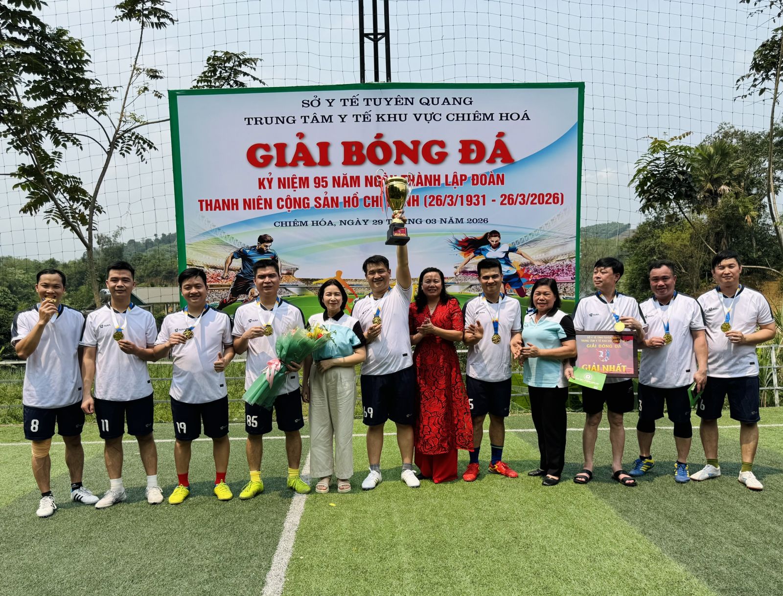 Thiết thực chào mừng kỷ niệm 95 năm Ngày thành lập Đoàn TNCS Hồ Chí Minh (26/03/1931 – 26/03/2026), sáng ngày 29/03/2026, tại sân bóng đá Hồng Anh (thôn Vĩnh Khang), Đoàn cơ sở Trung tâm Y tế khu vực Chiêm Hóa đã tổ chức thành công Giải bóng đá 7 người năm 2026 với sự tham gia sôi nổi của viên chức, đoàn viên và người lao động trong toàn đơn vị.