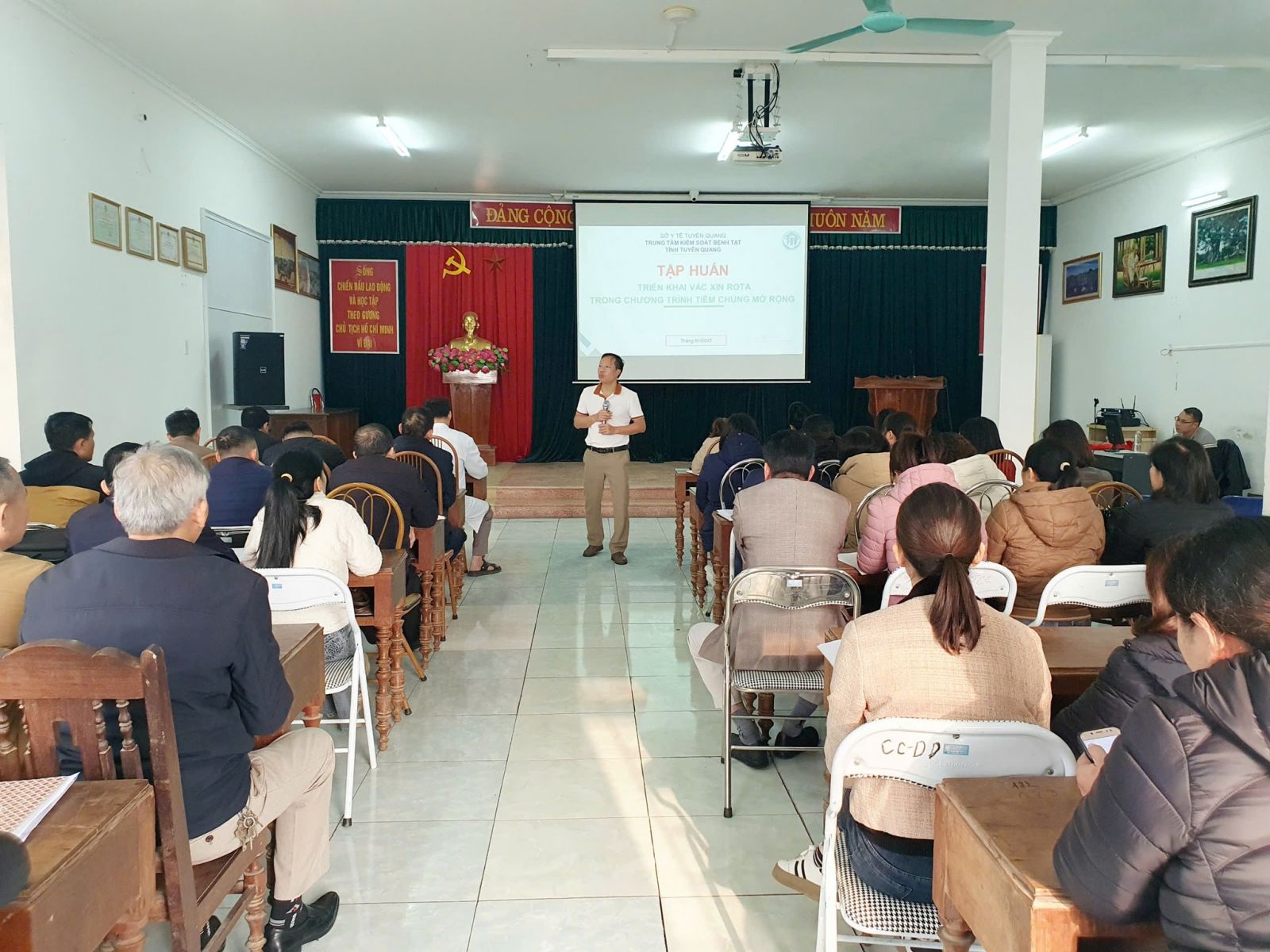 Sáng 03/01/2025, TTYT huyện Chiêm Hóa phối hợp với Trung tâm Kiểm soát bệnh tật tỉnh tổ chức tập huấn hướng dẫn triển khai vắc xin Rota trong Chương trình tiêm chủng mở rộng (TCMR) cho 50 học viên, là cán bộ y tế chuyên trách, cán bộ y tế tham gia hoạt động tiêm chủng mở rộng thuộc trạm Y tế các xã, thị trấn.
