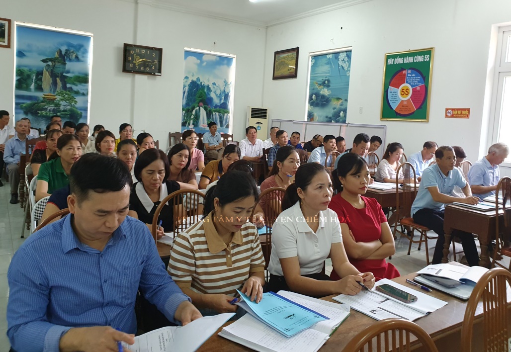 Sáng ngày 19/09, TTYT huyện Chiêm Hoá phối hợp với Trung tâm Kiểm soát bệnh tật tỉnh tổ chức Tập huấn tăng cường năng lực hệ thống triển khai hoạt động phòng, chống bệnh dại năm 2023. Tham gia lớp tập huấn có 60 cán bộ Trạm tế xã, thị trấn và cộng tác viên Y tế thôn bản.