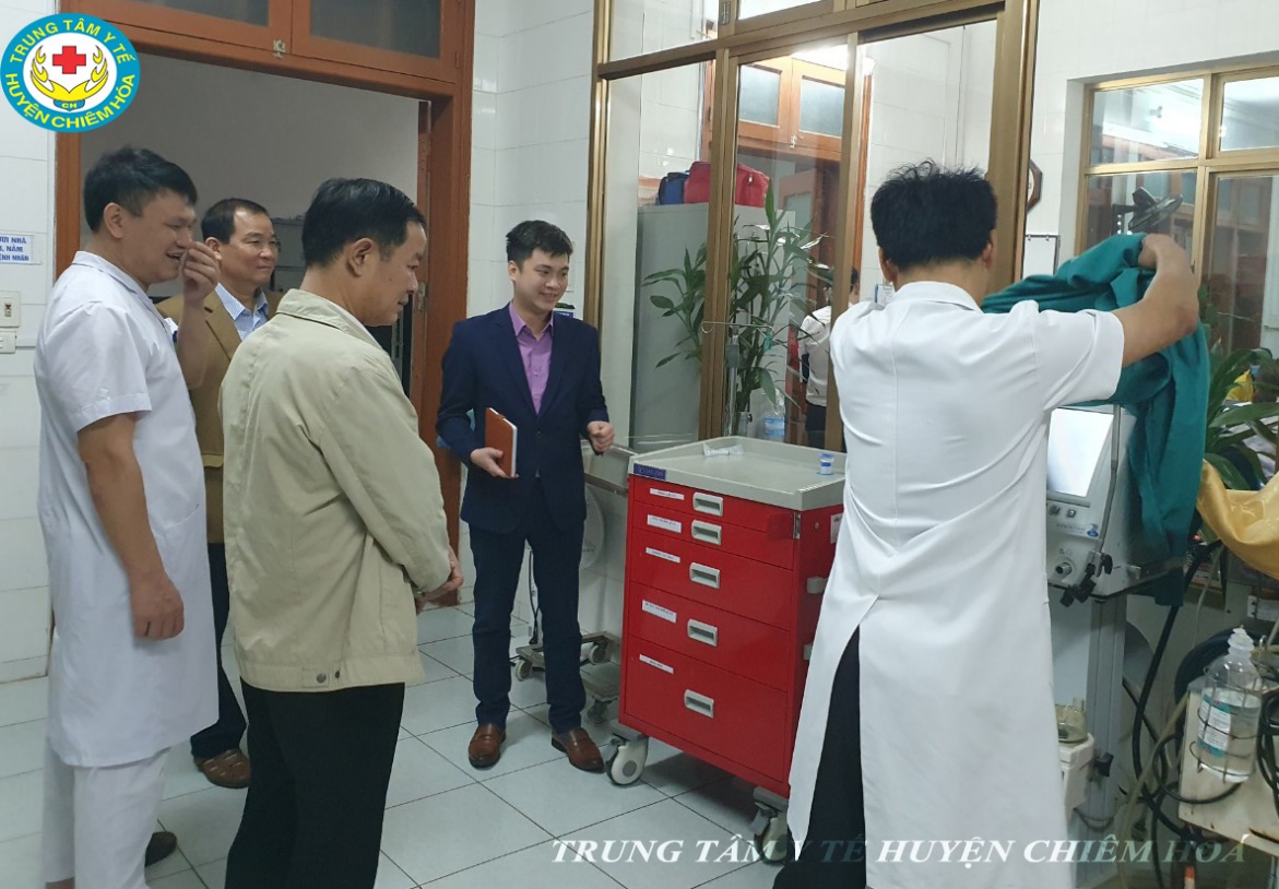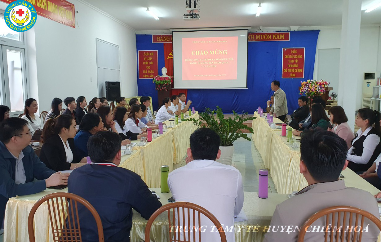 Trung tâm Y tế huyện Chiêm Hoá đã giới thiệu tổng quan về quy mô, cơ cấu tổ chức và kết quả các hoạt động của đơn vị. Tiếp đó, Đoàn đã đi thăm quan công tác khám, chữa bệnh, thu dung người bệnh và bộ phận đón tiếp bệnh nhân; tìm hiểu việc triển khai các dịch vụ cận lâm sàng tại khoa chẩn đoán hình ảnh, khoa xét nghiệm; triển khai các kỹ thuật mới, kỹ thuật chuyên sâu tại các khoa.