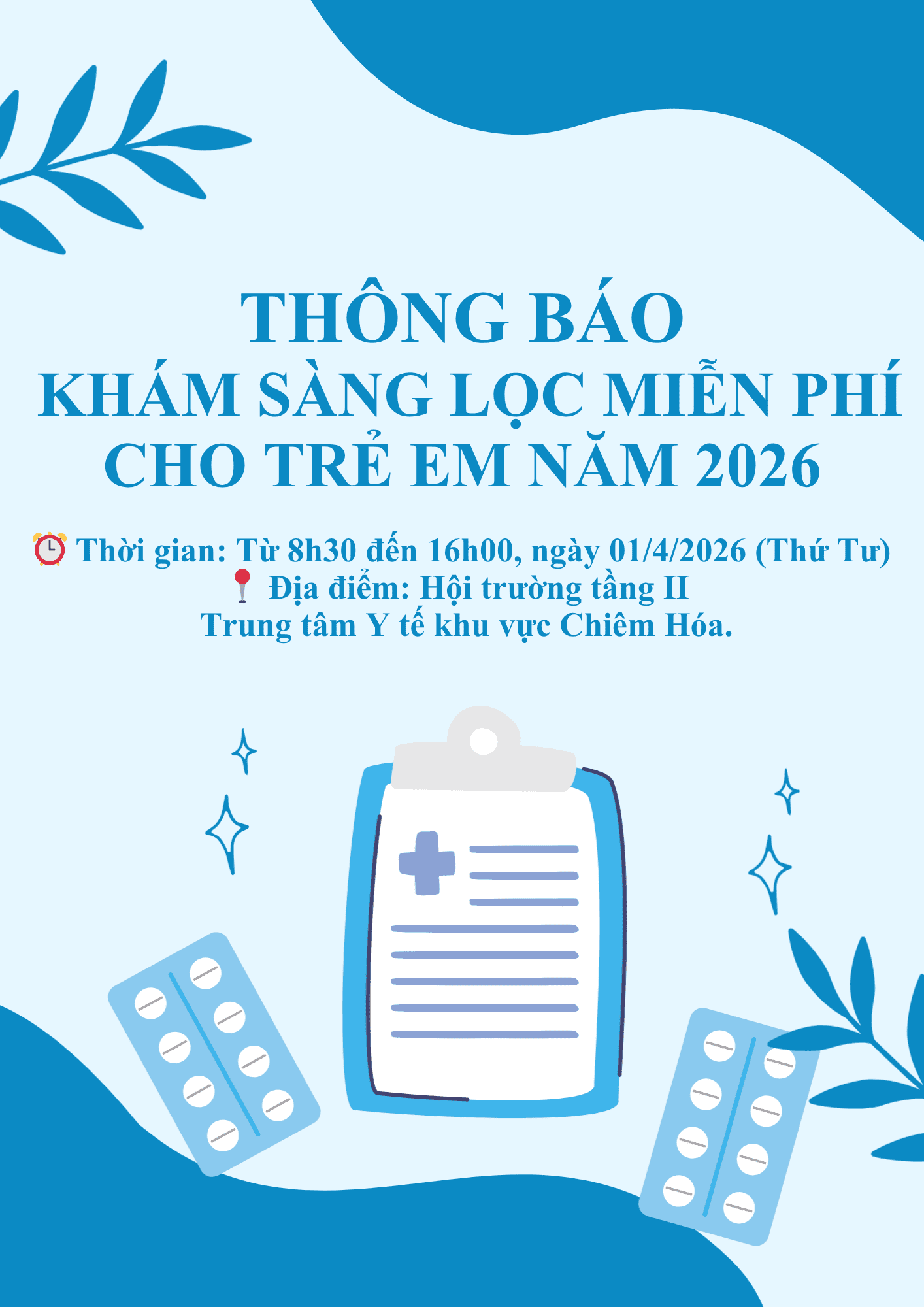 THÔNG BÁO KHÁM SÀNG LỌC MIỄN PHÍ CHO TRẺ EM NĂM 2026