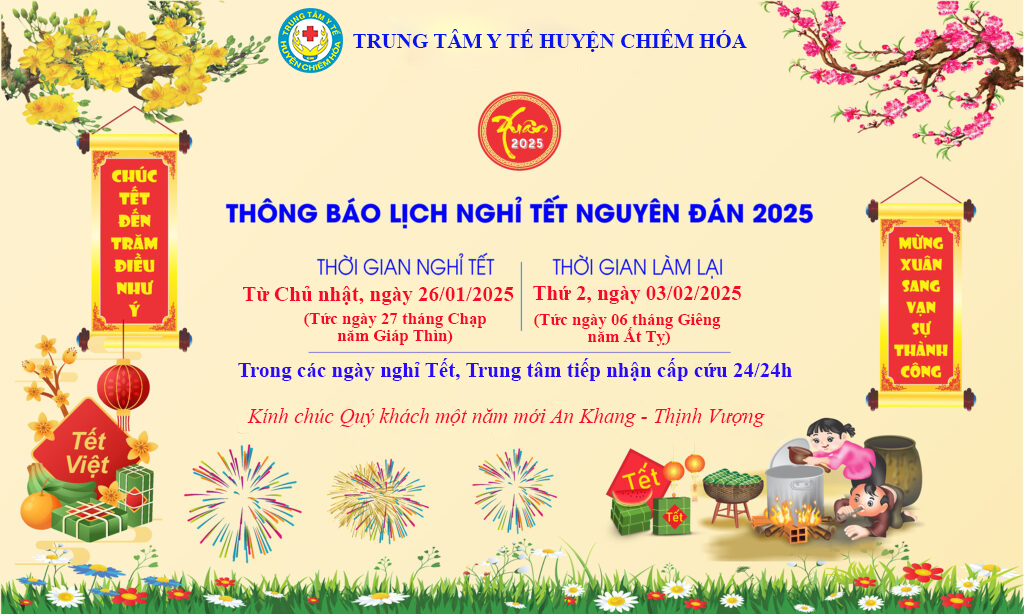 TTYT huyện Chiêm Hóa xin Thông báo về việc nghỉ Tết Nguyên Đán năm Ất Tỵ 2025 như sau:
