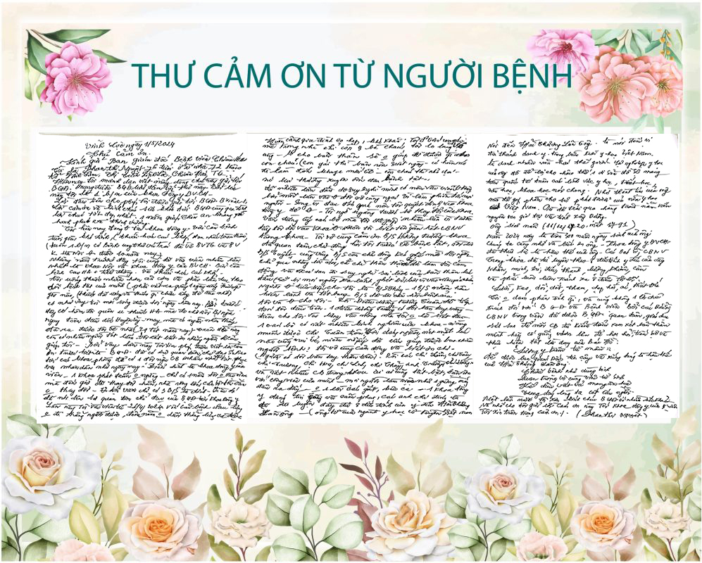 Mỗi lá thư, dòng tin nhắn cảm ơn của Bệnh nhân gửi đến trung tâm đều là “liều thuốc tinh thần”, tiếp thêm động lực giúp đội ngũ y, bác sĩ vượt qua những giây phút căng thẳng, tiếp tục phấn đấu rèn luyện y đức, mang đến hạnh phúc cho người bệnh.