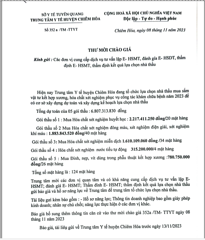 Thứ 4, 08/11/2023 | 08:44 A- A A+ | THƯ MỜI CHÀO GIÁ CamScanner_22-11-23_08_31_8ee4d60344.pdf Đọc bài Lưu Tập tin đính kèm Tổng số điểm của bài viết là: 0 trong 0 đánh giá Click để đánh giá bài viết