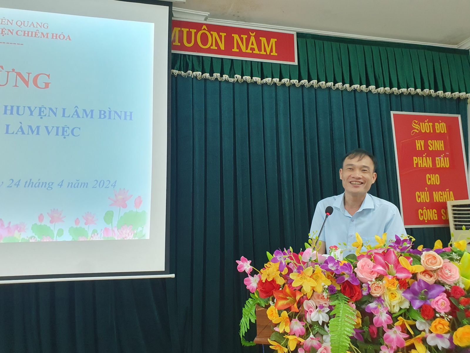 BS.CKII. Hà Văn Linh – Giám đốc TTYT huyện Chiêm Hoá đã bày tỏ sự vui mừng khi được đón đoàn công tác của Trung tâm Y tế huyện Lâm Bình đến thăm quan, trao đổi kinh nghiệm tại đơn vị và bày tỏ mong muốn thời gian tới hai đơn vị sẽ có nhiều cơ hội hơn nữa để chia sẻ, trao đổi, học tập kinh nghiệm trong việc nâng cao chất lượng khám chữa bệnh phục vụ nhân dân.