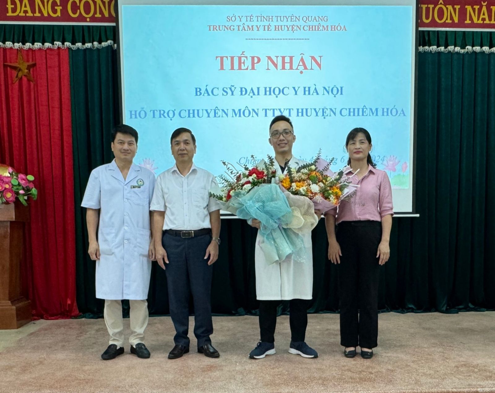 TTYT huyện Chiêm Hóa tiếp nhận ThS. BSNT. Trần Quang Đức - BS khoa Chấn thương chỉnh hình và Y học Thể thao, Bệnh viện Đại học Y Hà Nội. Trong thời gian 2 tháng, ThS.BSNT Trần Quang Đức sẽ trực tiếp thăm khám, điều trị cho người bệnh và hỗ trợ chuyên môn cho các y bác sỹ tại TTYT huyện Chiêm Hoá. ThS.BSNT Trần Quang Đức được đào tạo bài bản với trình độ chuyên môn cao, có kinh nghiệm lâm sàng, cùng với tinh thần, trách nhiệm cao.
