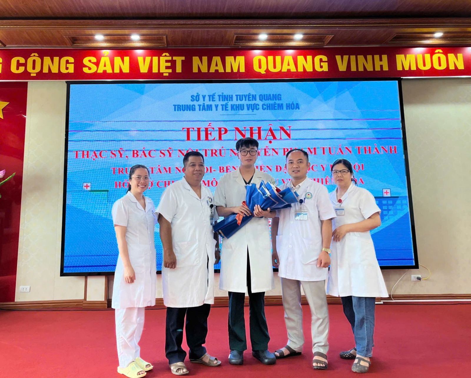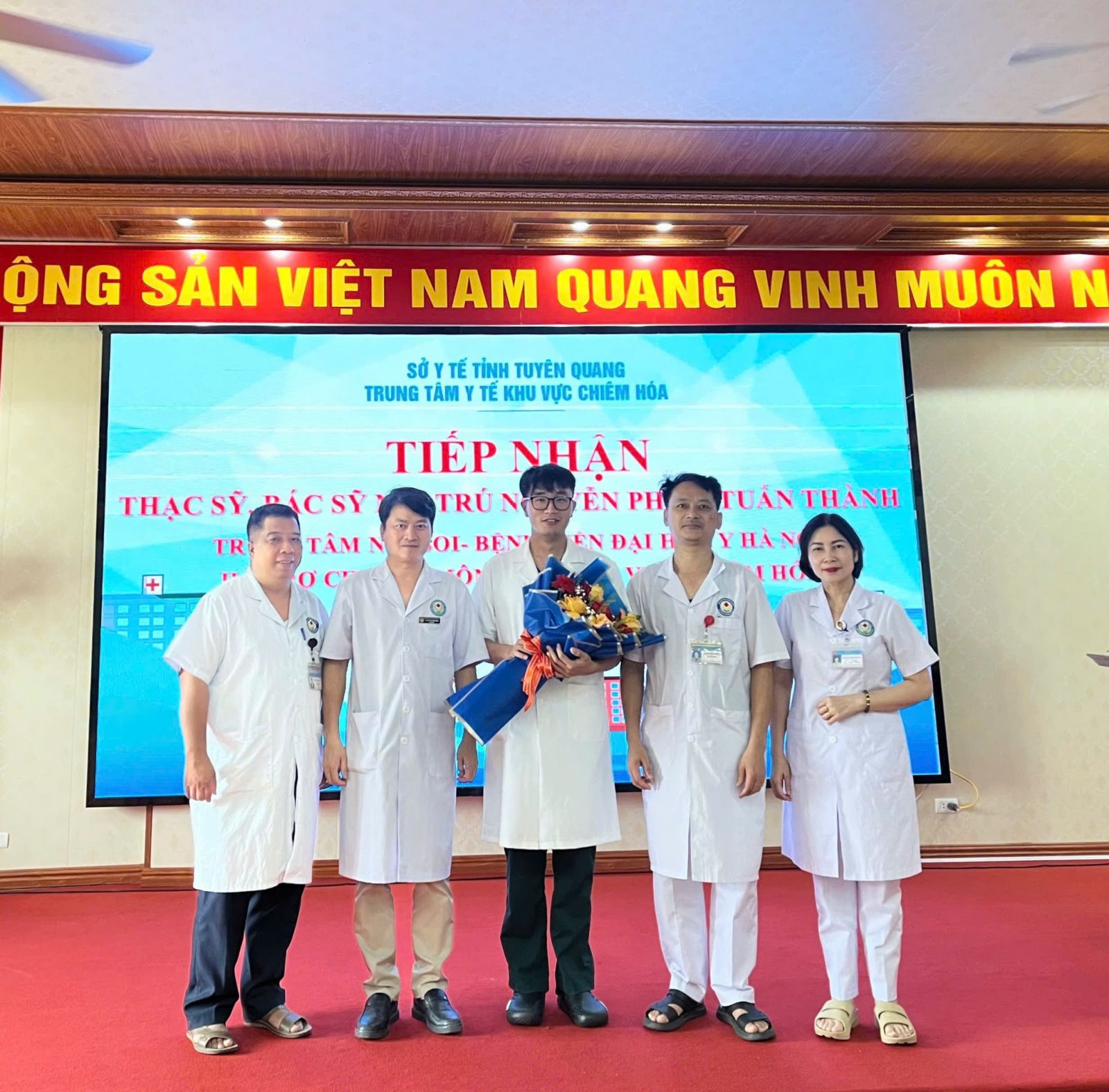 Chiều ngày 06/8, TTYT khu vực Chiêm Hóa đã tổ chức chương trình tiếp nhận bác sĩ nội trú từ Bệnh viện Đại học Y Hà Nội đến hỗ trợ chuyên môn tại đơn vị.