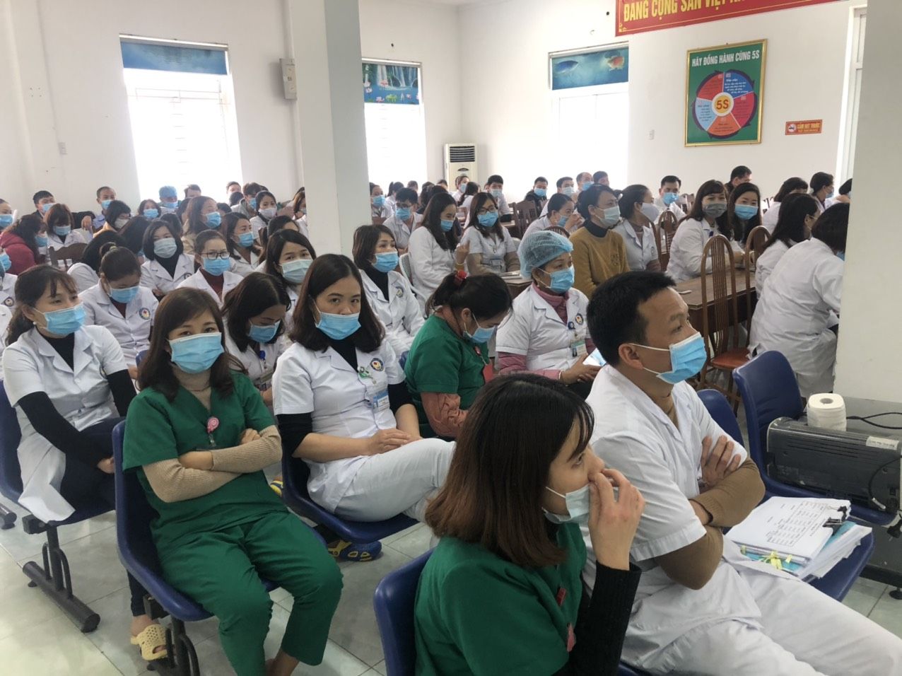 Lớp tập huấn được bác sĩ Hoàng Văn Sơn - Trưởng khoa KSBT trực tiếp phổ biến các nội dung liên quan đến khai báo y tế đối với bà con nhân dân trở về từ vùng dịch và các vùng liên quan.