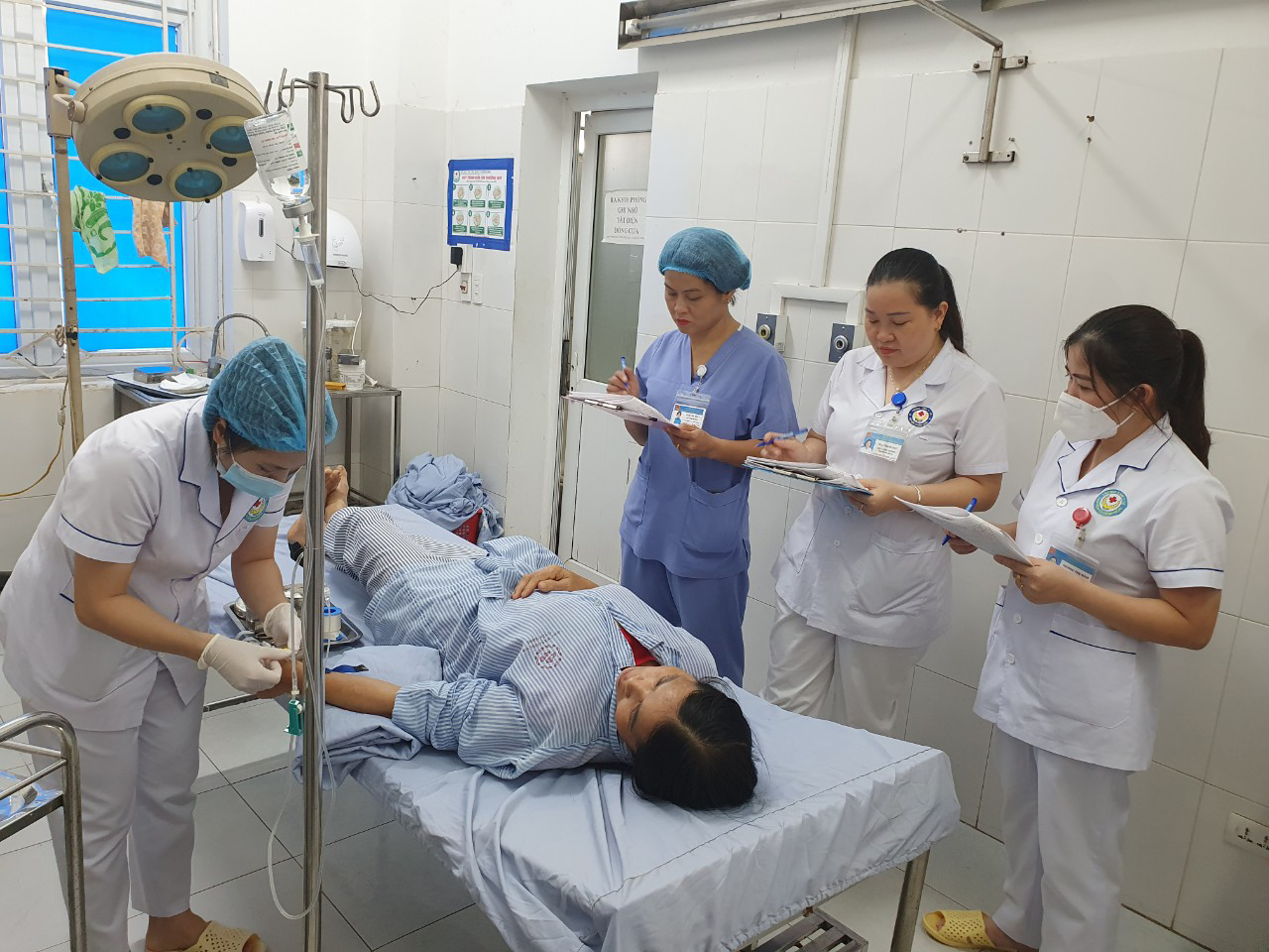Ở phần thi thực hành, các thí sinh thi theo từng nhóm đối tượng: điều dưỡng, kỹ thuật viên, hộ sinh được tổ chức tại các khoa, phòng.