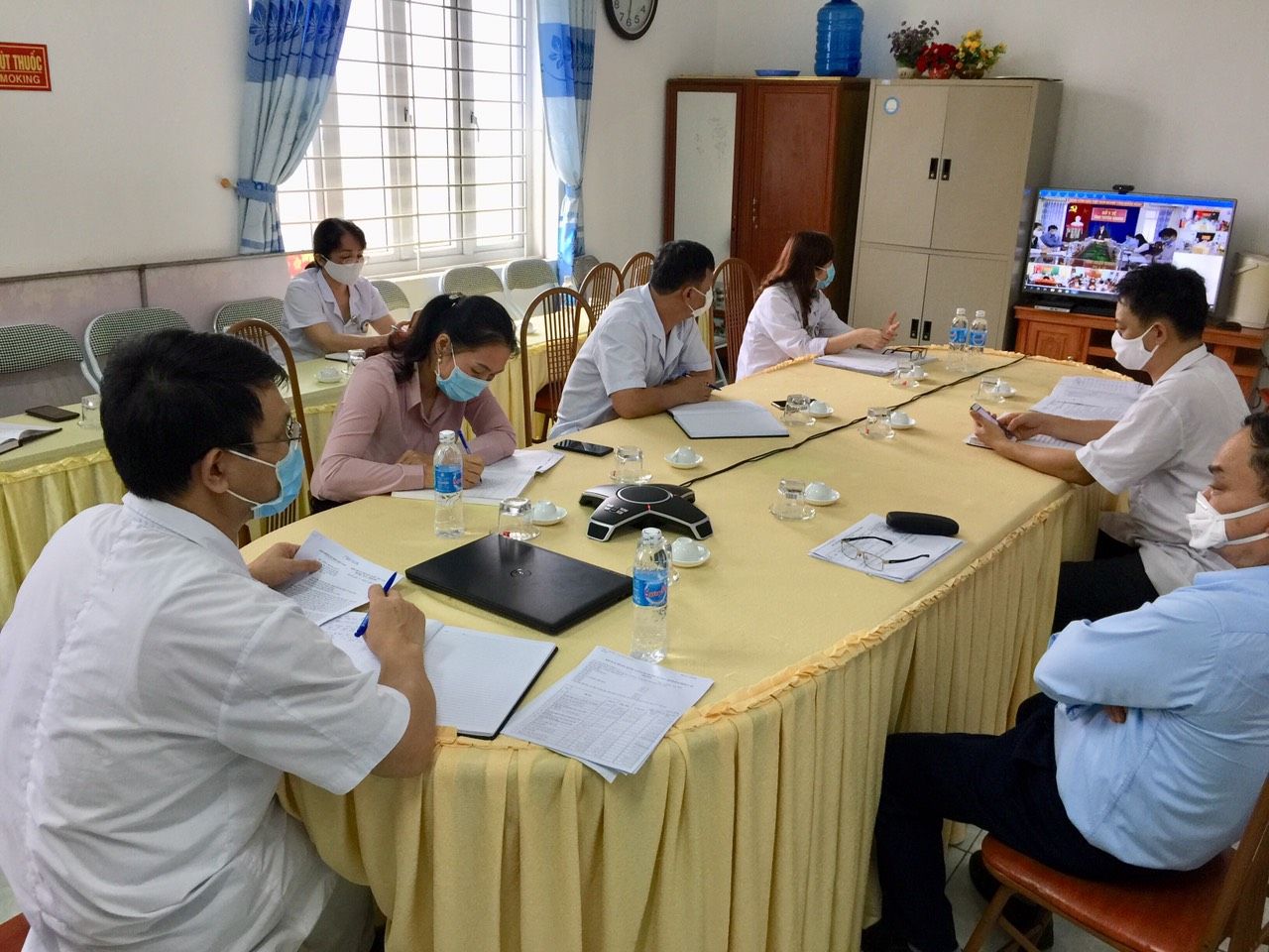 Trước tình hình dịch Covid-19 diễn biến hết sức phức tạp; Thực hiện chỉ đạo của Thủ tướng Chính phủ, Tỉnh ủy, UBND Tỉnh và Sở Y tế Tuyên Quang để ngăn chặn, kiểm soát, hạn chế sự lây lan của dịch trong cộng đổng và đảm bảo an toàn cho công tác khám chữa bệnh, việc tạm dừng tất cả các hoạt động đại hội, hội họp, tụ tập làm việc trên 20 người sẽ làm giảm bớt nguy cơ lây nhiễm dịch bệnh trong cộng đồng. Việc triển khai giao ban trực tuyến không những làm giảm bớt các hoạt động tập trung đông người tại bệnh viện mà còn góp phần đảm bảo được việc truyền tải, chỉ đạo, lãnh đạo của Sở Y tế đến các trung tâm trong toàn tỉnh một cách nhanh chóng và hiệu quả. Đồng thời nắm bắt thông tin nhanh chóng, chính xác đặc biệt là công tác phòng chống dịch Covid – 19.