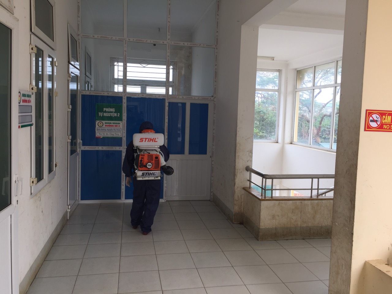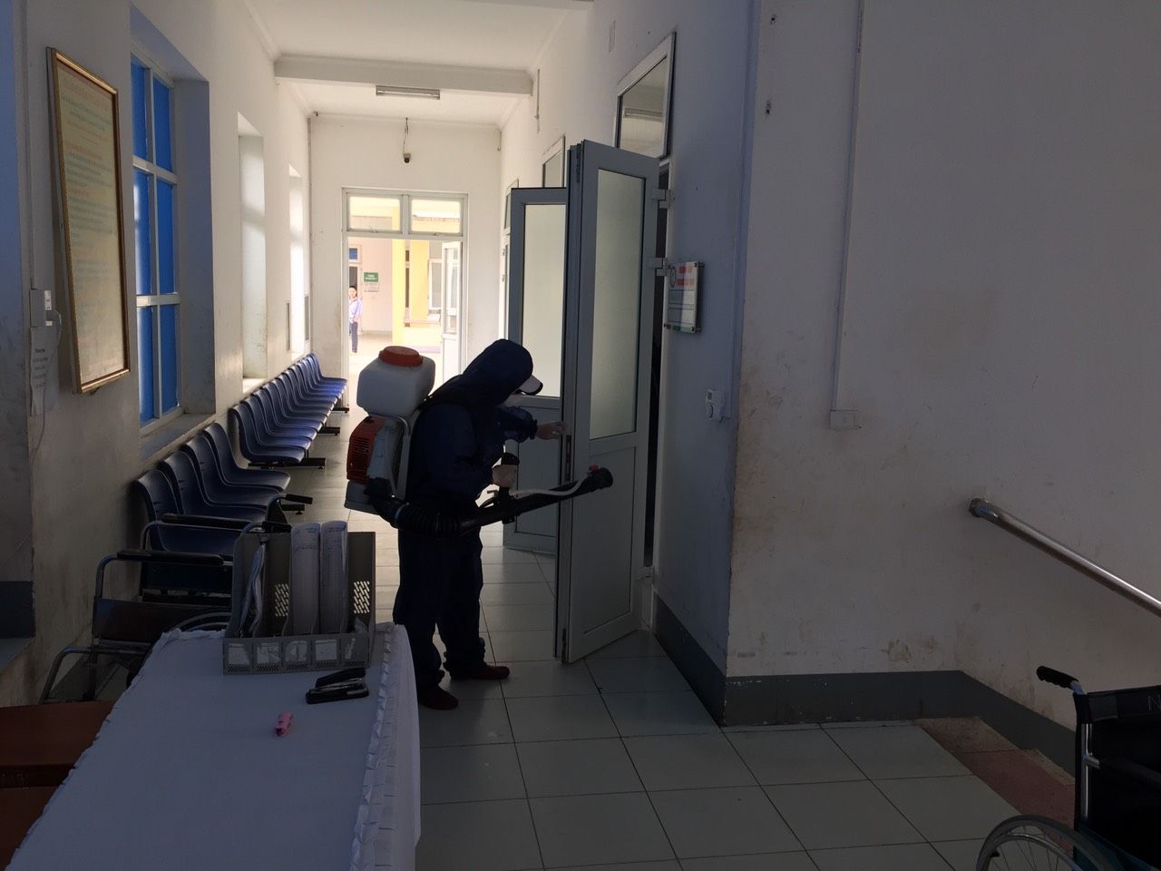 Trung tâm Y tế Chiêm Hóa tổ chức phun khử khuẩn toàn bộ khuân viên 2 lần trên tuần.