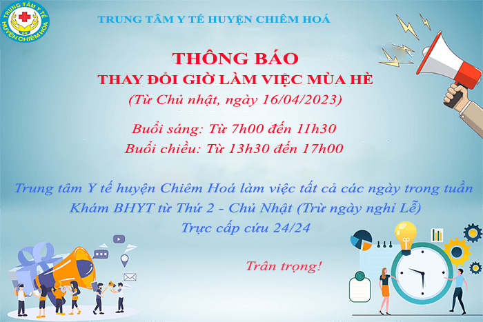 TRUNG TÂM Y TẾ HUYỆN CHIÊM HOÁ XIN THÔNG BÁO LỊCH LÀM VIỆC MÙA HÈ NHƯ SAU: