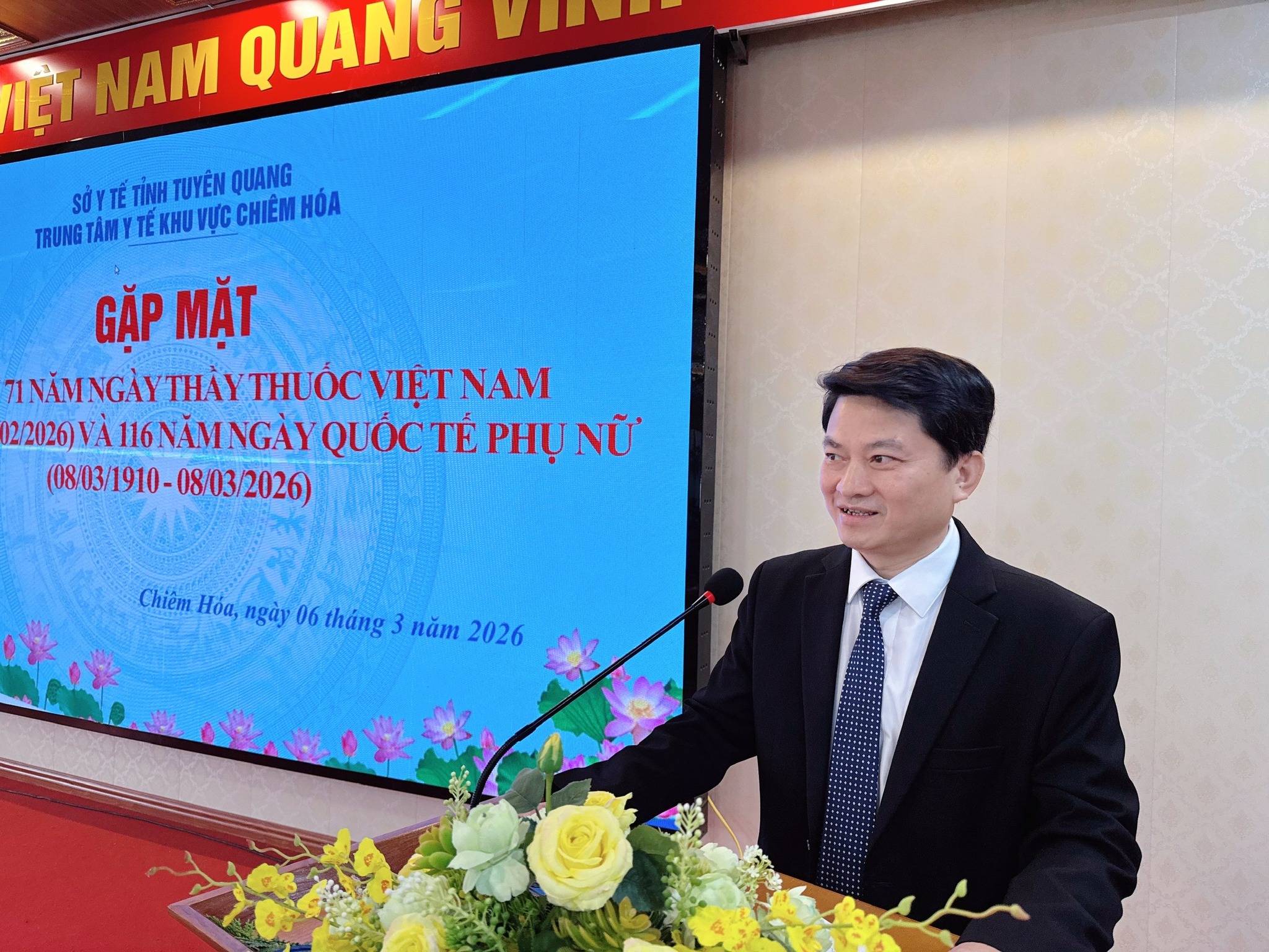 Phát biểu tại buổi gặp mặt, BS.CKII. Hà Văn Linh, Bí thư Đảng ủy, Giám đốc Trung tâm Y tế khu vực Chiêm Hóa đã ôn lại ý nghĩa lịch sử của Ngày Thầy thuốc Việt Nam, nhấn mạnh lời dạy của Chủ tịch Hồ Chí Minh: “Lương y phải như từ mẫu” – kim chỉ nam cho mọi hoạt động của đội ngũ cán bộ y tế. Đồng chí cũng ghi nhận, biểu dương tinh thần trách nhiệm, sự nỗ lực và những đóng góp quan trọng của tập thể viên chức, người lao động Trung tâm trong công tác khám, chữa bệnh và chăm sóc sức khỏe Nhân dân trên địa bàn.