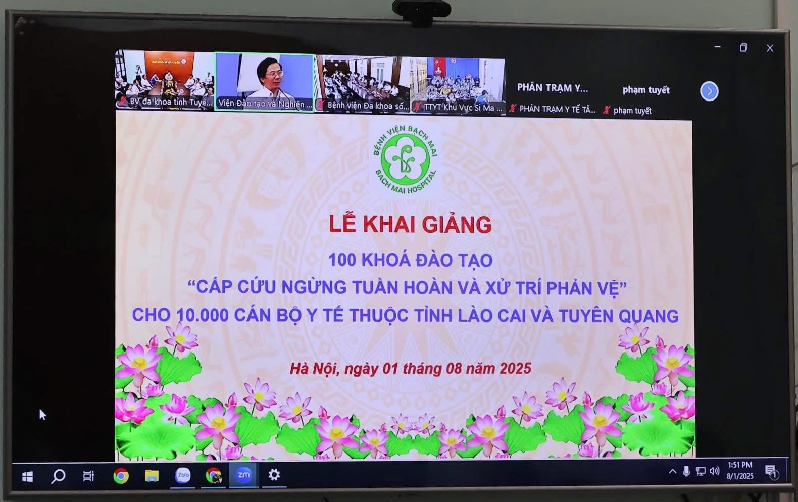 Thực hiện Công văn số 301/SYT-NVY ngày 29/07/2025 của Sở Y tế tỉnh Tuyên Quang, chiều ngày 01/8/2025, Trung tâm Y tế khu vực Chiêm Hóa đã tham gia trực tuyến lễ khai giảng và đào tạo “Cấp cứu ngừng tuần hoàn và xử trí phản vệ” do Bệnh viện Bạch Mai tổ chức.