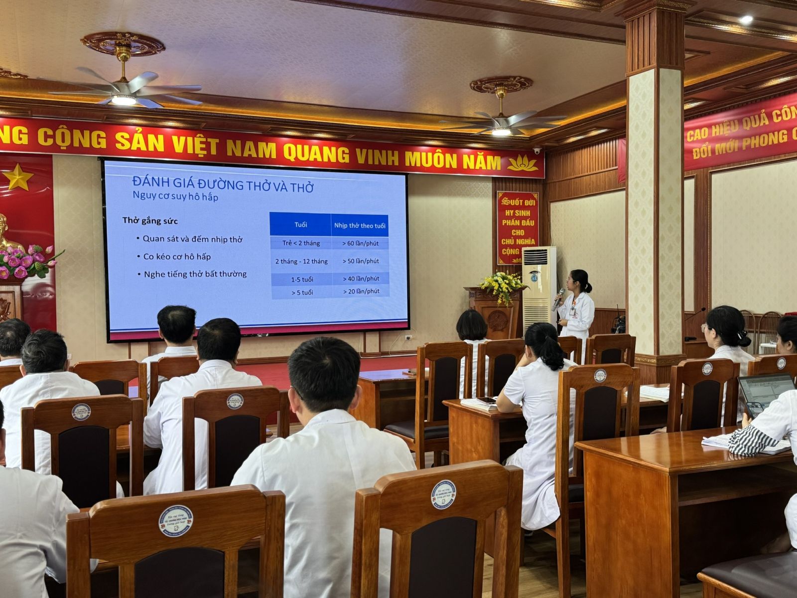 Tại chương trình, giảng viên đã chia sẻ những nội dung quan trọng liên quan đến việc nhận diện sớm các dấu hiệu trẻ bệnh nặng; phương pháp đánh giá nhanh tình trạng người bệnh; cũng như cách tiếp cận và xử trí ban đầu trong một số tình huống cấp cứu nhi khoa thường gặp. Nội dung bài giảng được xây dựng gắn với thực tiễn lâm sàng, góp phần giúp đội ngũ y, bác sĩ của Trung tâm cập nhật kiến thức và nâng cao kỹ năng chuyên môn trong công tác khám, chữa bệnh.