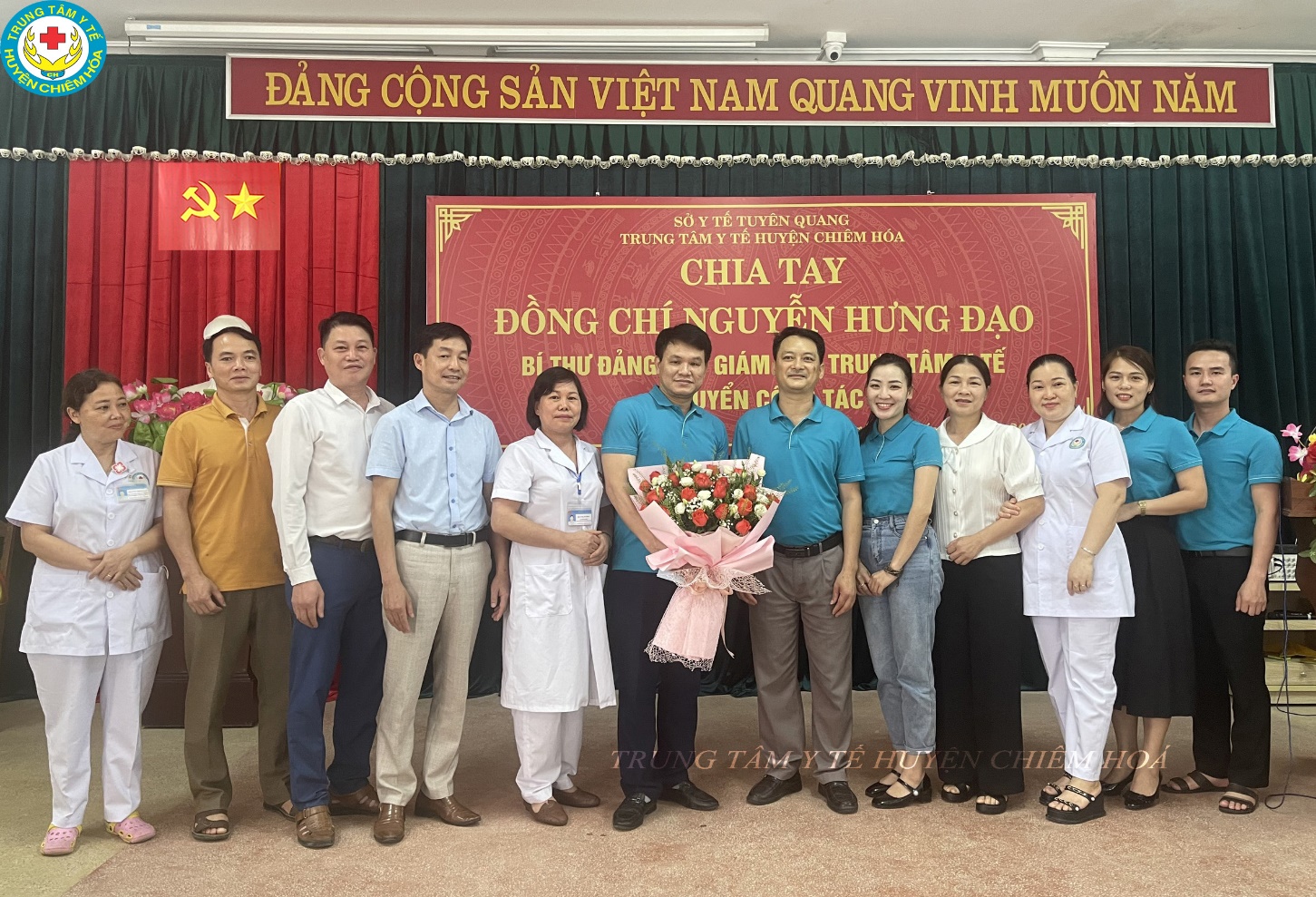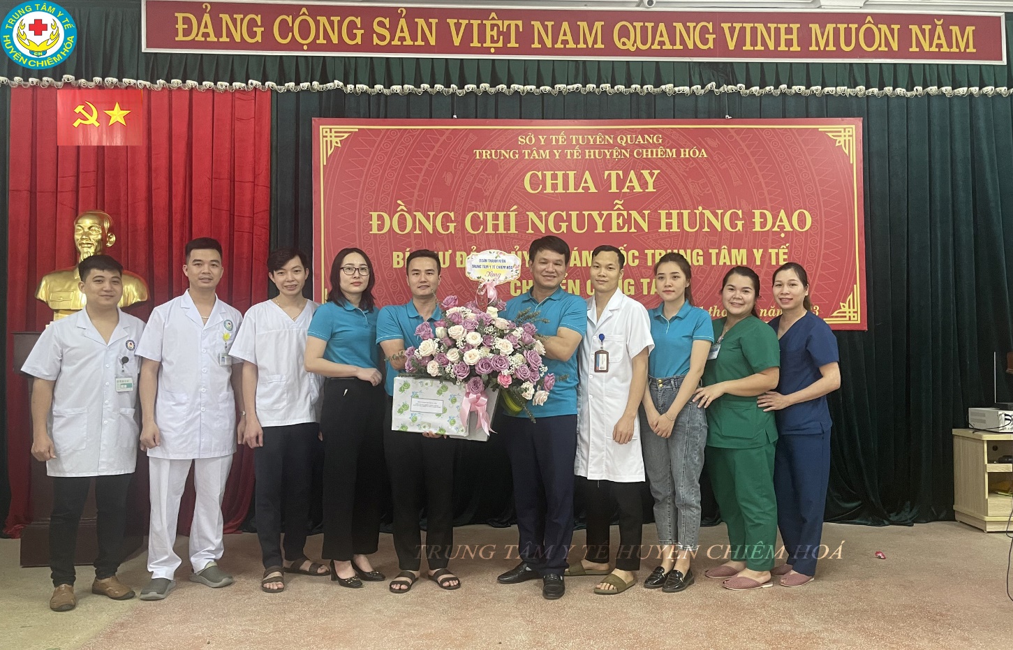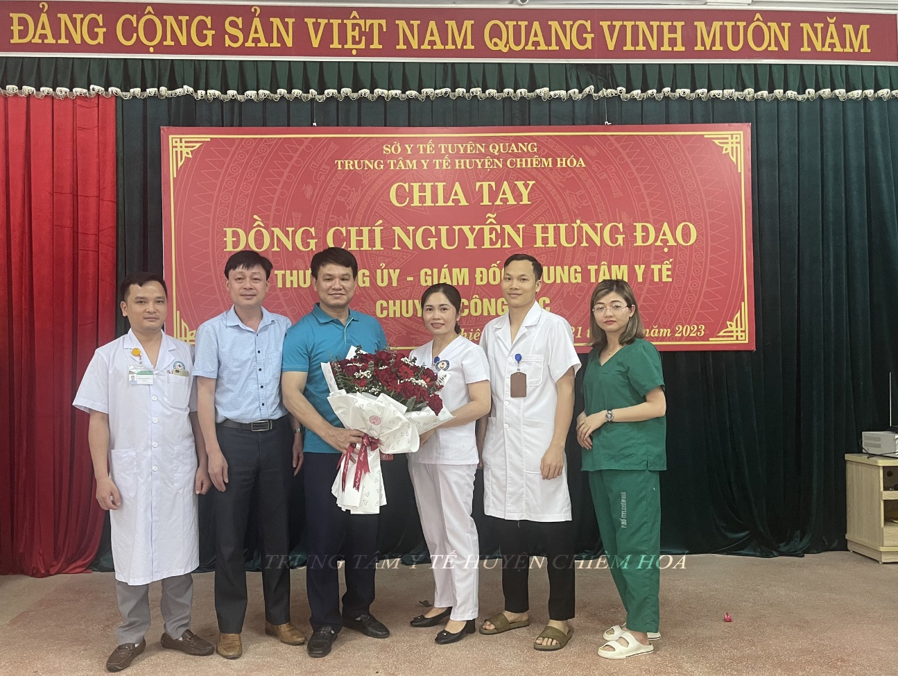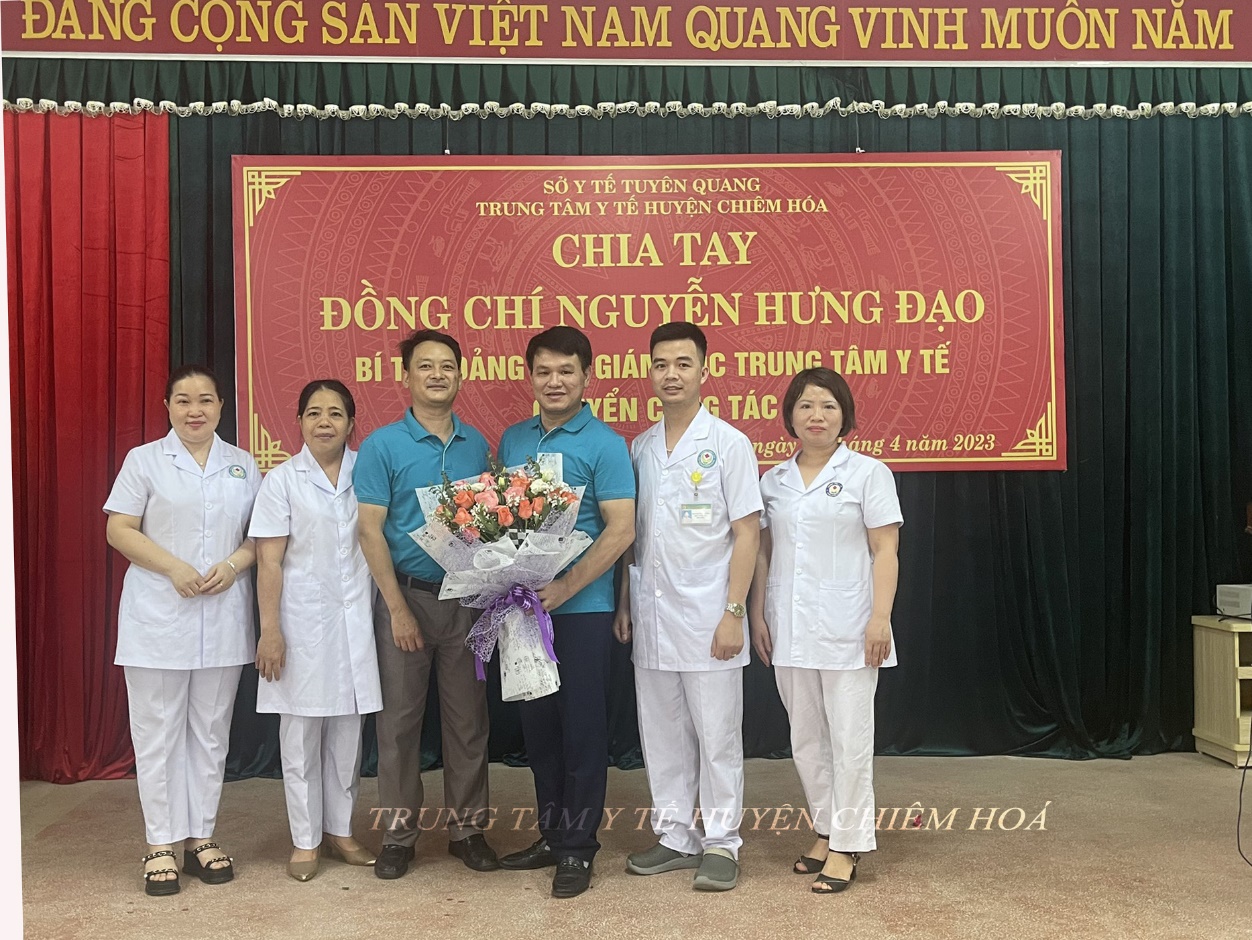 Thực hiện Quyết định số 288/QĐ-UBND ngày 12/04/2023 của Ủy ban nhân dân tỉnh Tuyên Quang về việc chuyển công tác đối với viên chức, lãnh đạo quản lý, đồng chí Nguyễn Hưng Đạo được bổ nhiệm giữ chức vụ Giám đốc Bệnh viện đa khoa tỉnh Tuyên Quang. Vừa qua, TTYT huyện Chiêm Hóa đã tổ chức gặp mặt chia tay đồng chí Nguyễn Hưng Đạo, nguyên Giám đốc Trung tâm Y tế huyện Chiêm Hóa về đơn vị công tác mới.