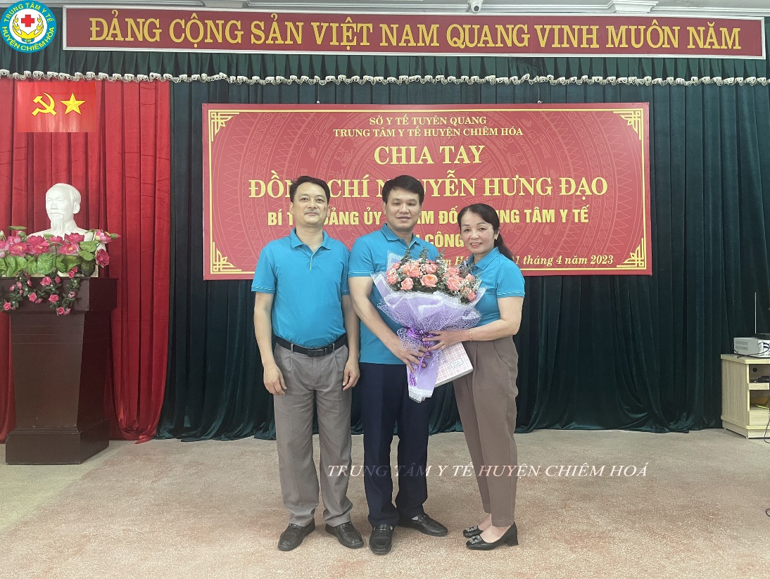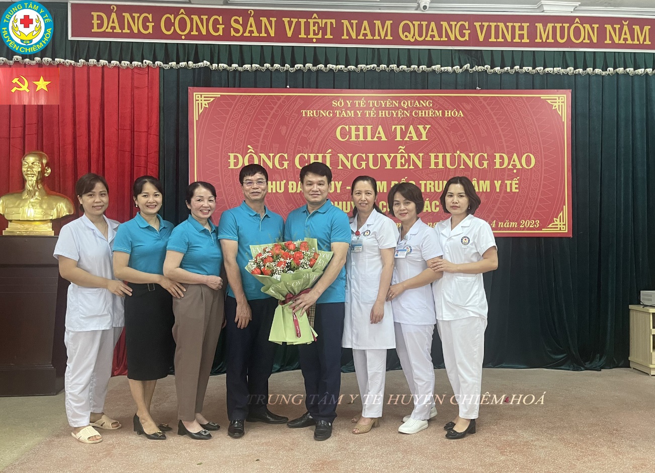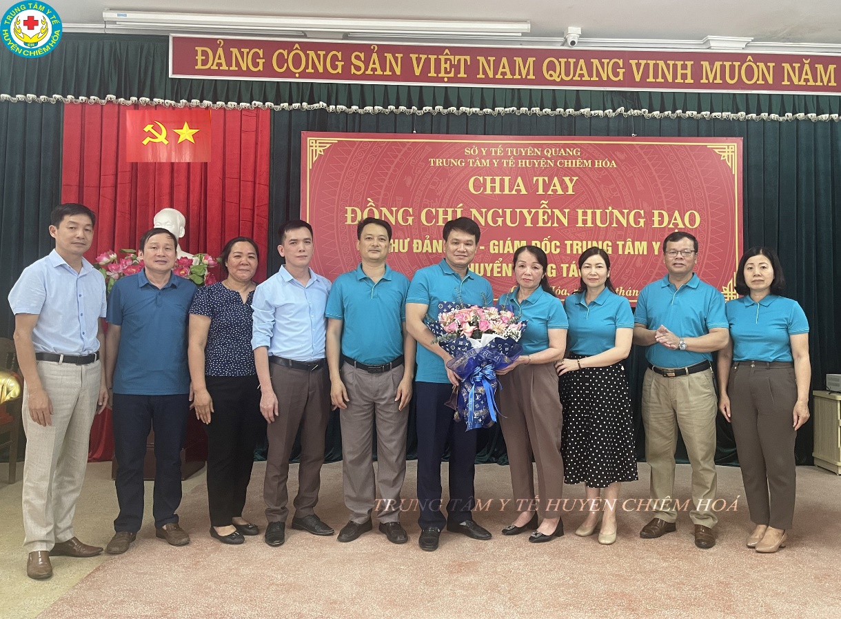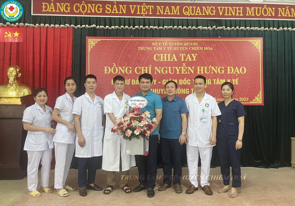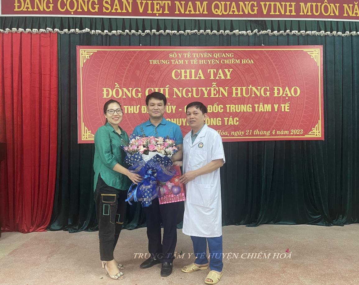 Thực hiện Quyết định số 288/QĐ-UBND ngày 12/04/2023 của Ủy ban nhân dân tỉnh Tuyên Quang về việc chuyển công tác đối với viên chức, lãnh đạo quản lý, đồng chí Nguyễn Hưng Đạo được bổ nhiệm giữ chức vụ Giám đốc Bệnh viện đa khoa tỉnh Tuyên Quang. Vừa qua, TTYT huyện Chiêm Hóa đã tổ chức gặp mặt chia tay đồng chí Nguyễn Hưng Đạo, nguyên Giám đốc Trung tâm Y tế huyện Chiêm Hóa về đơn vị công tác mới.
