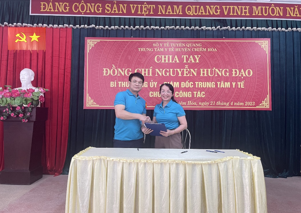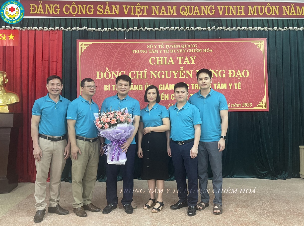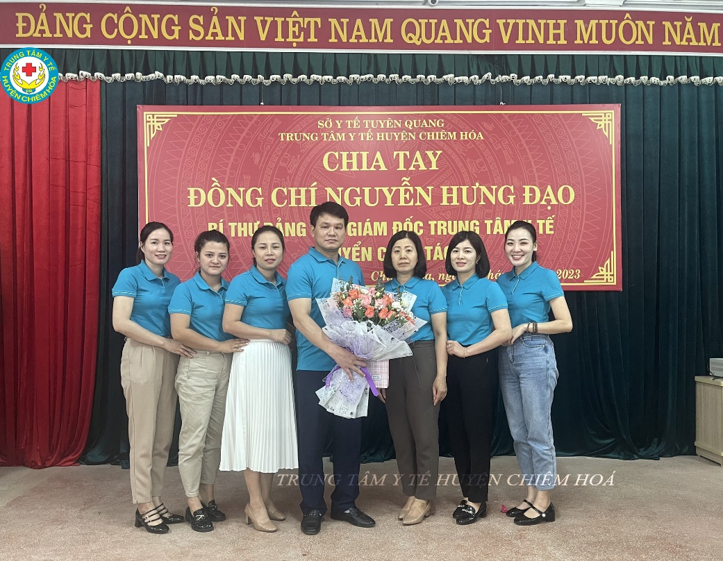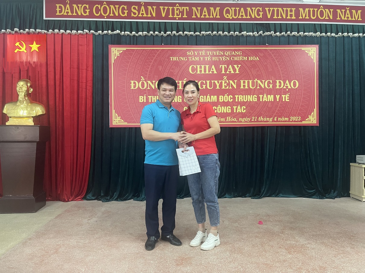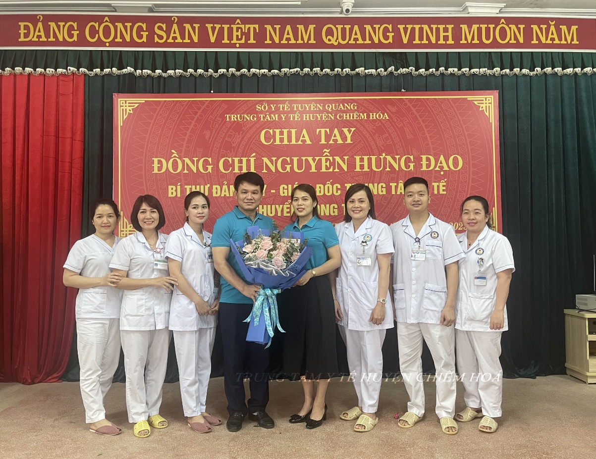 Thực hiện Quyết định số 288/QĐ-UBND ngày 12/04/2023 của Ủy ban nhân dân tỉnh Tuyên Quang về việc chuyển công tác đối với viên chức, lãnh đạo quản lý, đồng chí Nguyễn Hưng Đạo được bổ nhiệm giữ chức vụ Giám đốc Bệnh viện đa khoa tỉnh Tuyên Quang. Vừa qua, TTYT huyện Chiêm Hóa đã tổ chức gặp mặt chia tay đồng chí Nguyễn Hưng Đạo, nguyên Giám đốc Trung tâm Y tế huyện Chiêm Hóa về đơn vị công tác mới.