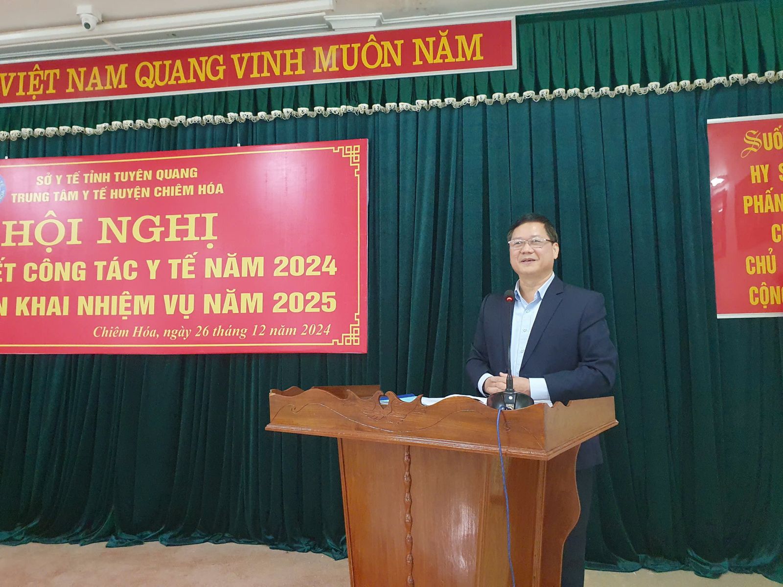 Chiều ngày 26/12/2024, Trung tâm Y tế huyện Chiêm Hóa tổ chức Hội nghị tổng kết công tác Y tế năm 2024, triển khai phương hướng, nhiệm vụ công tác năm 2025. Dự Hội nghị có Đồng chí La Đăng Tái – Phó Giám đốc Sở Y tế; đồng chí Hà Thị Minh Quang, Uỷ viên BTV Huyện uỷ, Phó Chủ tịch UBND huyện Chiêm Hóa, Ban Giám đốc, lãnh đạo các khoa phòng, TYT xã, thị trấn và viên chức NLĐ TTYT.